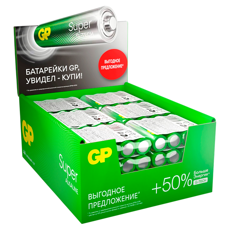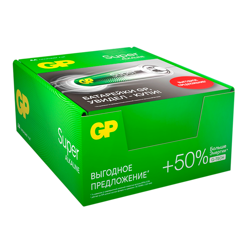 Новая линейка батареек GP Super Alkaline с технологией G-TECH, которые обеспечивают до 50%* больше мощности, позволяя вам наслаждаться использованием ваших устройств без перерывов. Технология G-TECH гарантирует длительное время службы ваших устройств. Благодаря использованию графита высокой чистоты и высококачественного порошка цинка S, батарейки обеспечивают высокую мощность и стабильное напряжение на протяжении продолжительного времени. Запатентованная система предотвращения протечек обеспечивает безопасность использования и защиту ваших устройств. Эти щелочные батарейки выделяются соотношением цены и качества и идеально подходят для повседневных устройств, таких как: часы, пульты дистанционного управления и другие.