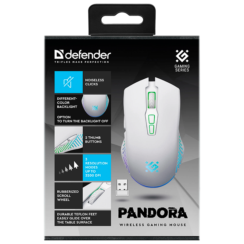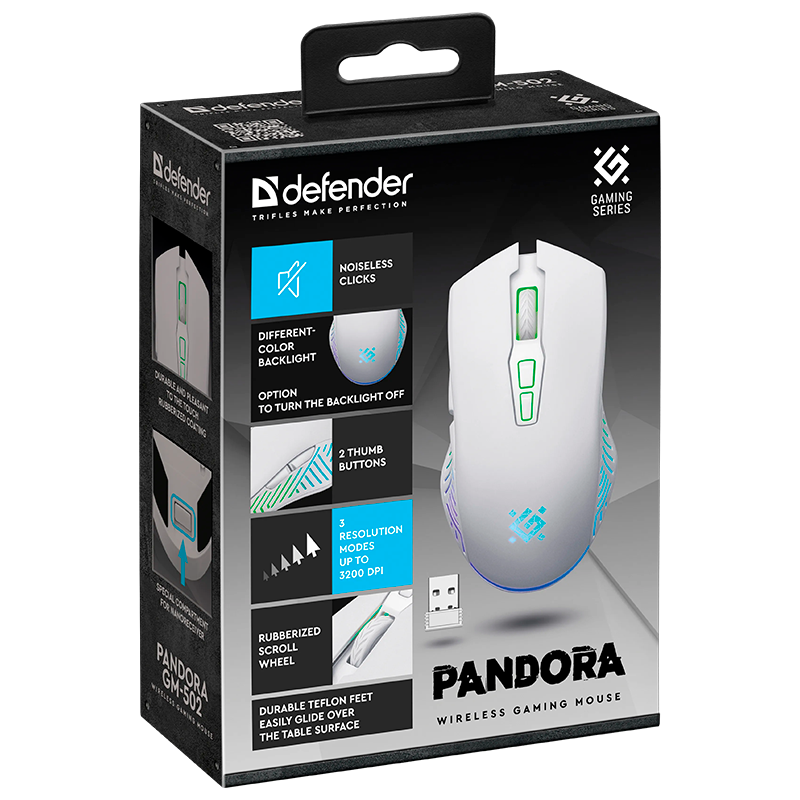 Мышь беспроводная Defender GM-502 Pandora игровая USB белый (1/60)