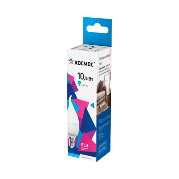 Лампа светодиодная Космос CW E14 10.5W 4500К 174-265V свеча на ветру матовая (1/10/80)
