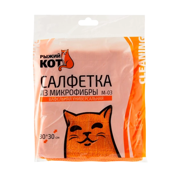 Салфетка Рыжий кот M-03 30х30см микрофибра вафельная оранжевый (1/40/200)