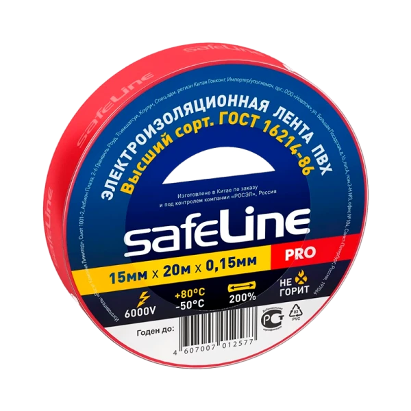 Safeline изолента ПВХ 15/20 красная, 150мкм, 9362 - высококачественная изолента производства компании Safeline.