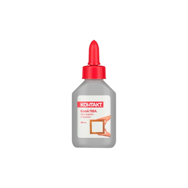 Клей Контакт ПВА 40мл для дерева и бумаги;