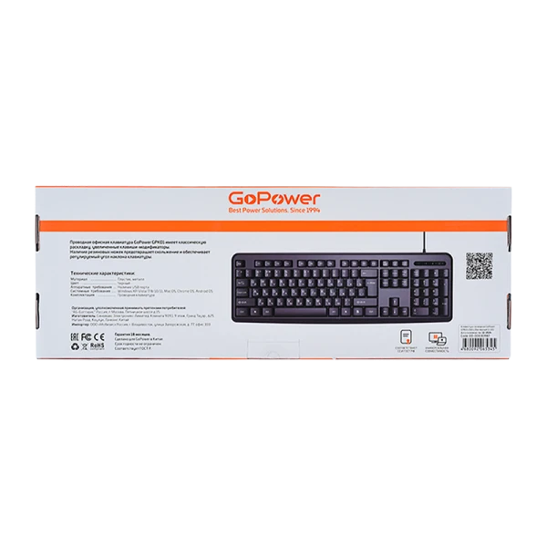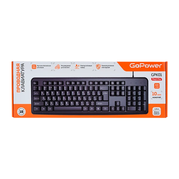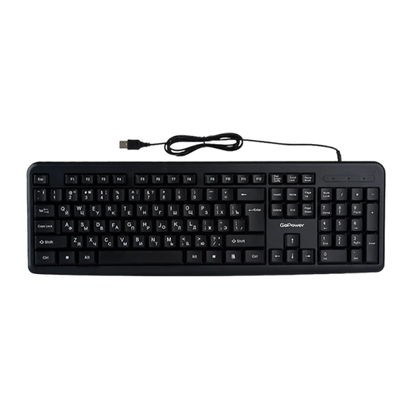 Клавиатура проводная GoPower GPK01 классическая USB 1.35м черный (1/20)
