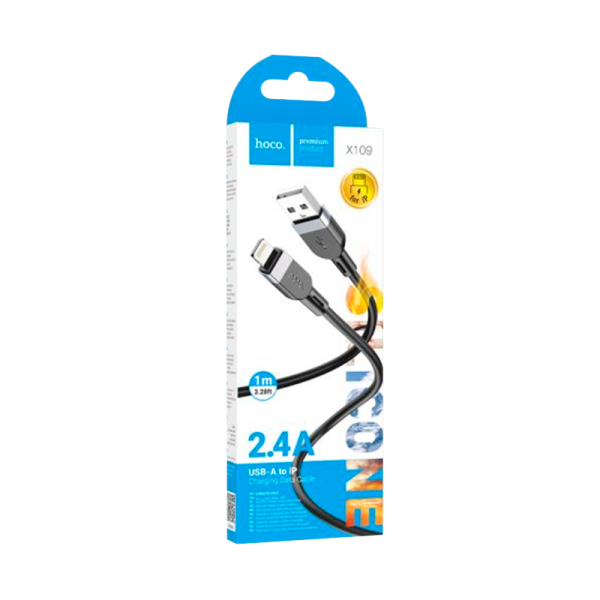 Кабель HOCO X109 USB (m)-Lightning (m) 1.0м 2.4A силикон черный;