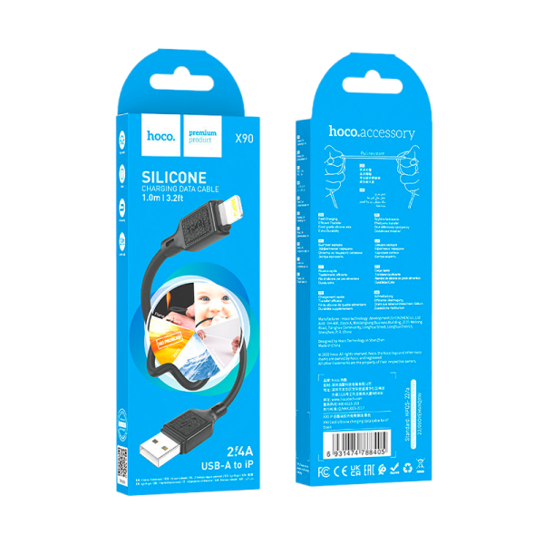 Кабель HOCO X90 USB (m)-Lightning (m) 1.0м 2.4A силикон черный;