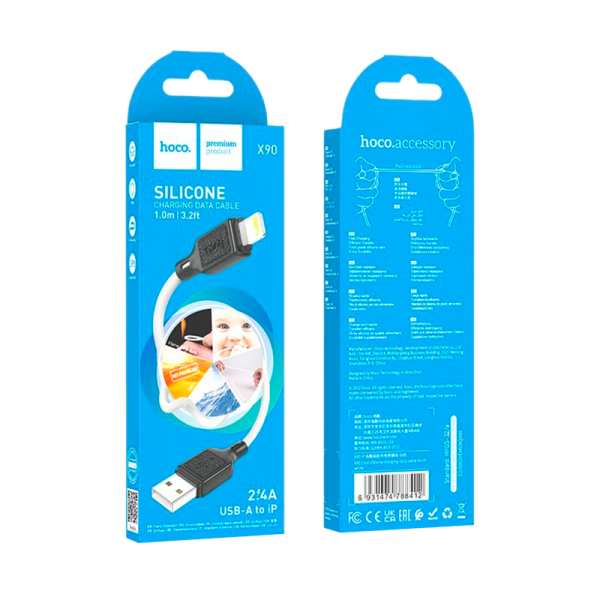 Кабель HOCO X90 USB (m)-Lightning (m) 1.0м 2.4A силикон белый;