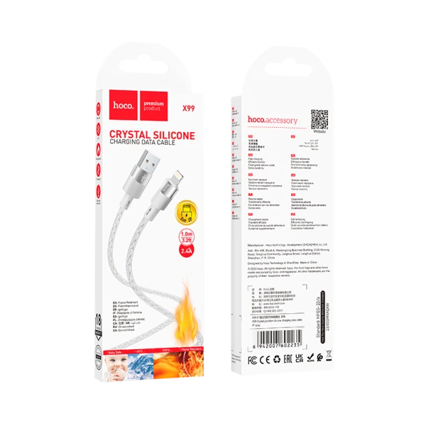 Кабель HOCO X99 USB (m)-Lightning (m) 1м 2.4A силикон серый (1/31/310)