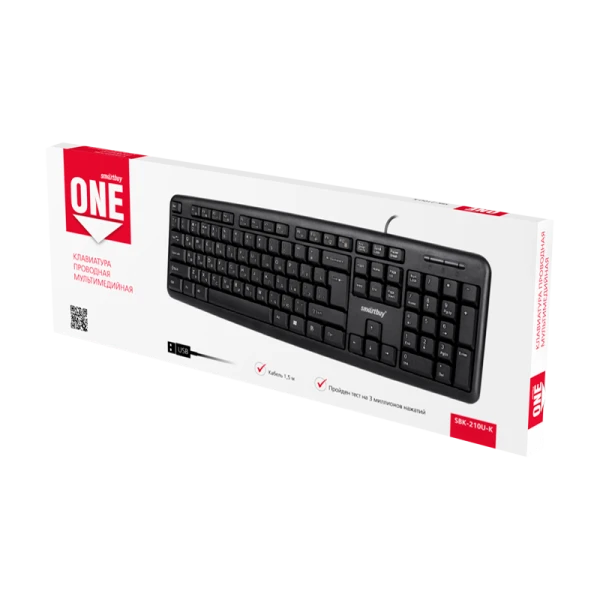 Клавиатура проводная Smartbuy 210 ONE классическая USB 1.5м черный (1/20)
