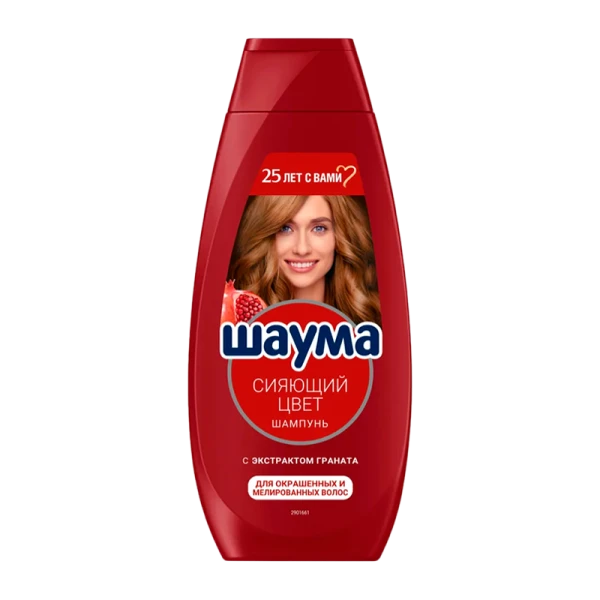 Шампунь Шаума Сияющий Цвет для окрашенных и мелированных волос. Сохраняет цвет и интенсивный блеск. С экстрактом граната.