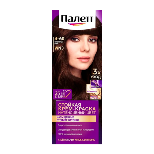 Palette - Стойкая крем-краска для волос 4-60 (WN-3) Золотистый кофе (110 мл). Стойкая крем-краска для волос ПАЛЕТТ дарит волосам стойкий цвет и ослепительный блеск с эффектом металлик.