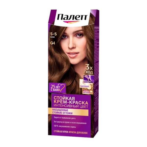 Palette - Стойкая крем-краска для волос 5-5 (G-4) Какао (110 мл). Стойкая крем-краска для волос Палетт дарит волосам стойкий цвет и ослепительный блеск с эффектом металлик.
