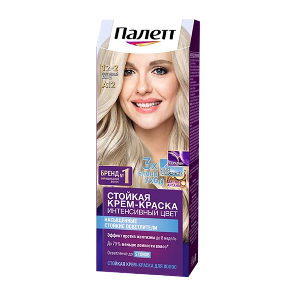 Благодаря тройной системе ухода стойкая крем-краска для волос Палетт обеспечивает бережное окрашивание. С аммиаком. Комплекс с Кератином, Пантенолом и Аргановым маслом проникает глубоко в структуру волоса, восстанавливая, увлажняя и питая его изнутри. Активные вещества оказывают смягчающее и укрепляющее воздействие, делая волосы гладкими и блестящими. Формула с высокоинтенсивными пигментами придает волосам насыщенный цвет и защищает его от вымывания. До 100% без седины. Надолго!