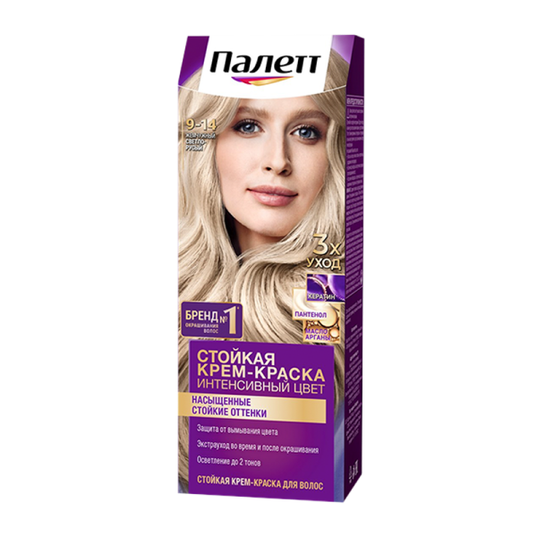 Благодаря тройной системе ухода стойкая крем-краска для волос Палетт обеспечивает бережное окрашивание. С аммиаком.