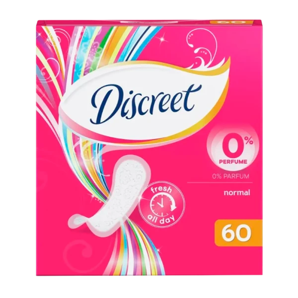 Коллекция экстрадышащих ежедневок Discreet - до 12 часов свежести! Discreet Normal - тонкие ежедневки классической формы без аромата, которые поддерживают чувство 100% свежести до 12 часов, обеспечивают 100% нейтрализации запаха. Специальный впитывающий слой Discreet Normal позволит чувствовать себя неотразимой и уверенной в себе каждый день! Заботятся о вашей коже, одобрены дерматологами. Невероятно тонкие, менее 1 мм, дышащие ежедневки. Без аромата, позволяют коже дышать. Обеспечивают 100% свежести Обеспечивают 100% нейтрализации запаха. Идеально фиксируется на белье и адптируется к каждому движению твоего тела.