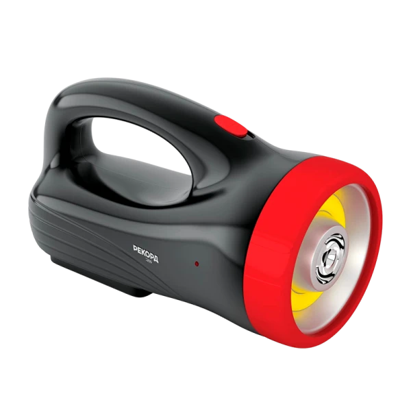 Аккумуляторный светодиодный фонарь-прожектор РЕКОРД PВ-3200, черный 23206 заряжается от сети с помощью розетки, которая находится на корпусе прибора. Фонарь имеет два режима работы: