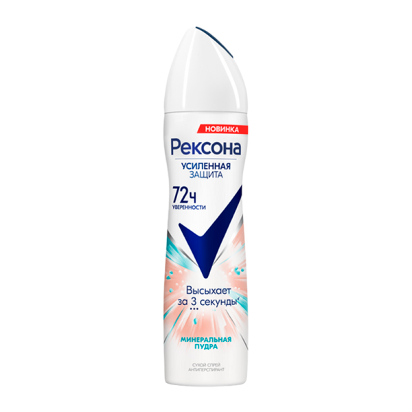 Чувствуйте только комфорт и уверенность в течение всего дня вместе с антиперспирантом-аэрозолем Rexona Минеральная пудра.