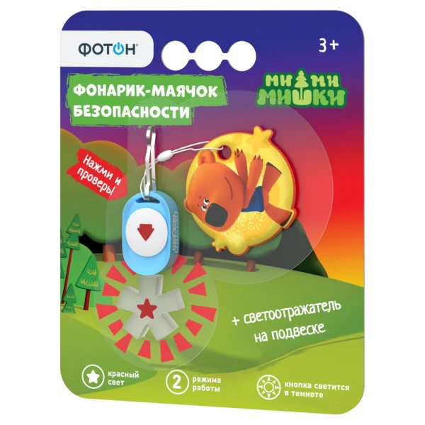 Светодиодный фонарик-маячок крепится на одежду или детское транспортное средство в темное время суток. Металлический карабин не даст маячку потеряться, а кнопка с эффектом люминесценции будет всегда видна в темноте. В комплект входит иллюстрированная подвеска со светоотражателем на обороте, которую можно использовать отдельно.