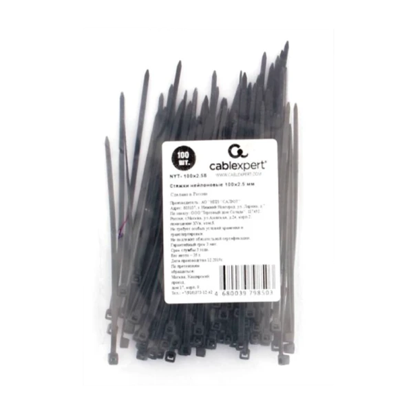 Стяжки Cablexpert 2.5*100мм нейлон (цена за упаковку (100шт.)) черный
