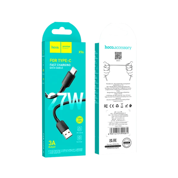 Кабель HOCO X96 USB (m)-Type-C (m) 1.0м 3.0A 27W ПВХ черный;