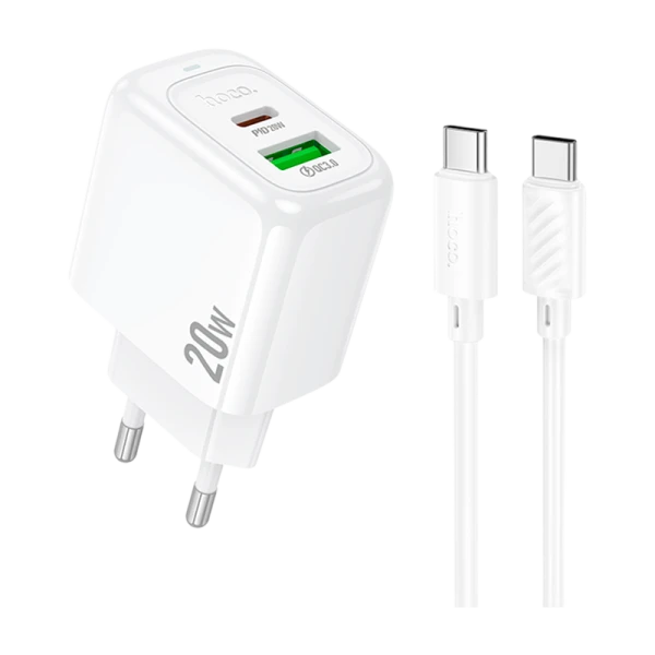 Сетевое З/У HOCO CS54A 1USB+1Type-C 3.0A 20W QC3.0 с кабелем Type-C белый (1/28/168)