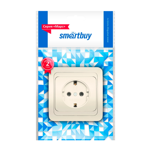 Розетка Smartbuy Марс 1гн. 16A С/З керамика бежевый (1/10/200)