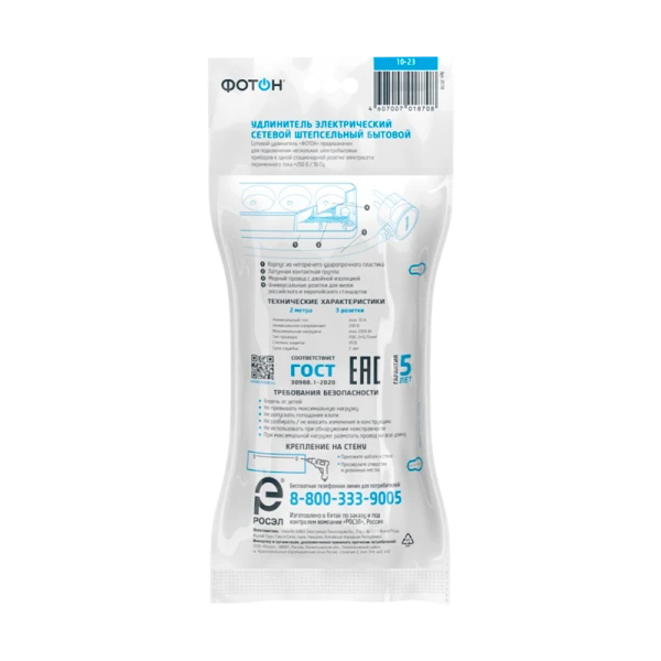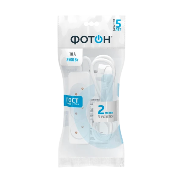 Удлинитель сетевой "ФОТОН" 10-23 - это простая, но надёжная и безопасная модель по самой выгодной цене. Предназначена для подключения электроприборов суммарной мощностью до 2500Вт. Колодка с 3 розетками и длиной провода 2 метра. Полностью соответствует нормам ГОСТ и ЕАС. Предоставляется безусловная гарантия 5 лет. Корпус изготовлен из термоустойчивого и ударопрочного пластика. Контактная группа из латуни обеспечивает высокую электропроводность и максимально плотный контакт со штырями вилок подключаемых приборов. Гнездовые контакты расположены под углом для одновременного подключения нескольких приборов. Подходят для подключения вилок российского и европейского стандарта. Провод ПВС с медной токопроводящей жилой и двойной ПВХ изоляцией устойчив к нагреву и обладает повышенной гибкостью. Удлинитель белого цвета подходит для большинства ситуаций домашнего использования.