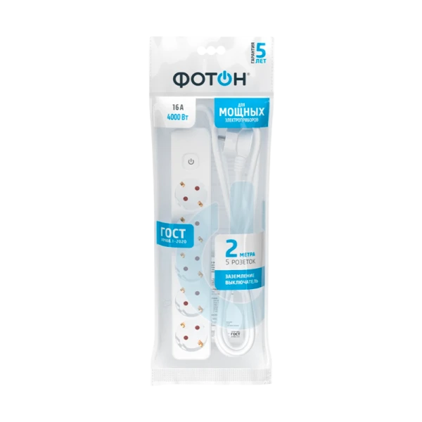 Колодка с 5 розетками и длиной провода 2 метра. Полностью соответствует нормам ГОСТ и ЕАС. Предоставляется безусловная гарантия 5 лет. Корпус изготовлен из термоустойчивого и ударопрочного пластика. Контактная группа из латуни обеспечивает высокую электропроводность и максимально плотный контакт со штырями вилок подключаемых приборов. Гнездовые контакты расположены под углом для одновременного подключения нескольких приборов. Подходят для подключения вилок российского и европейского стандарта. Провод ПВС с медной токопроводящей жилой и двойной ПВХ изоляцией устойчив к нагреву и обладает повышенной гибкостью. Удлинитель белого цвета подходит для большинства ситуаций домашнего использования.