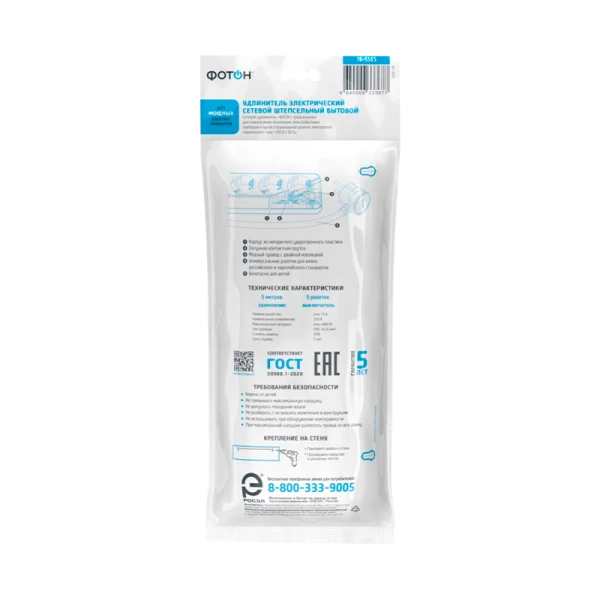 Удлинитель сетевой "ФОТОН" 16-55ES с заземлением предназначен для подключения электроприборов суммарной мощностью до 4000Вт. Оснащен выключателем, позволяющим обесточить все разъемы одним нажатием кнопки. Снабжены защитными шторками, прикрывающими контакты, для обеспечения дополнительной безопасности.