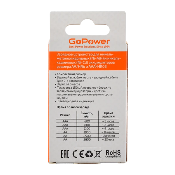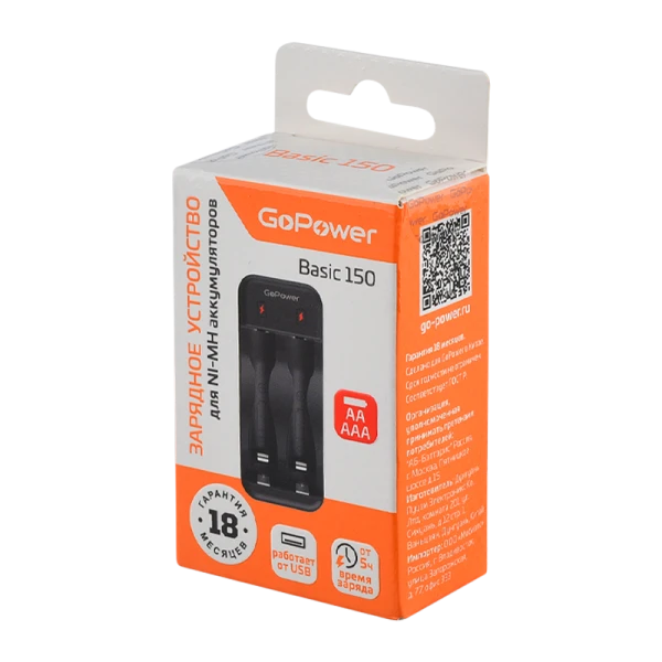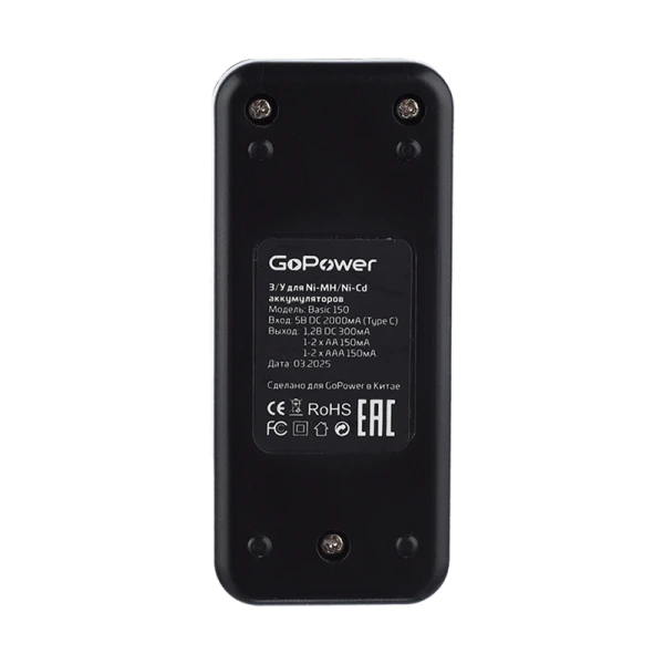 З/У для аккумуляторов GoPower Basic 150 Ni-MH/Ni-Cd 2 слота (1/40/80)