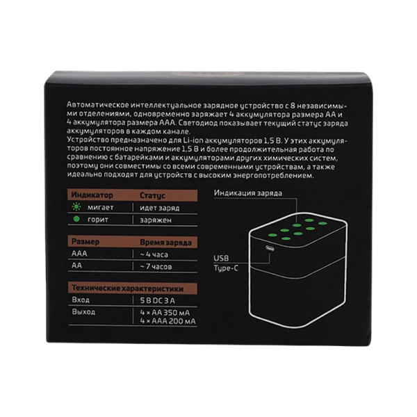 З/У для аккумуляторов GoPower SmartCase Li-ion 8 слотов +4AA и 4AAA (1/45)