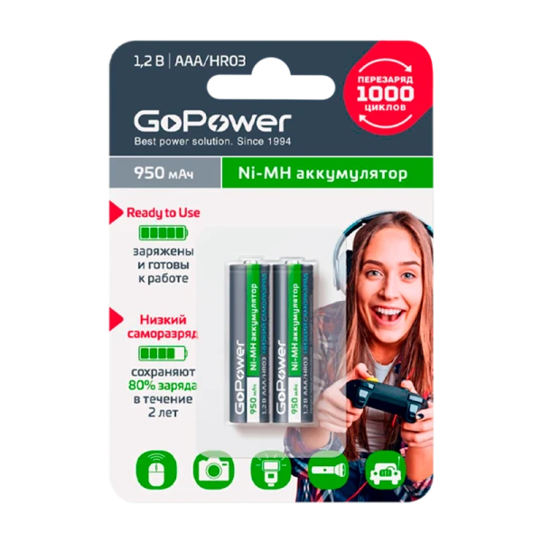 Аккумулятор бытовой GoPower HR6 AA BL2 Li-ion 1.5V 2200mAh