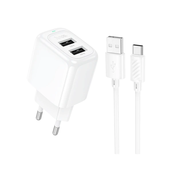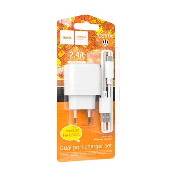 Сетевое З/У HOCO CS51A 2USB 2.4A с кабелем Type-C белый (1/28/168)