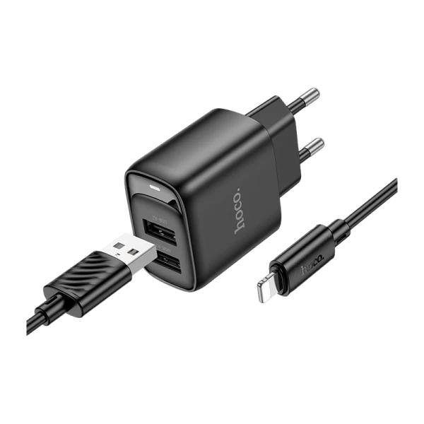 Сетевое З/У HOCO C141A 2USB 2.1A с кабелем Lightning черный;