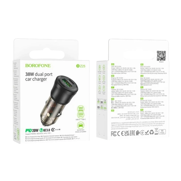 Автомобильное З/У Borofone BZ25 1USB+1Type-C 38W PD,QC черный (1/98/392)