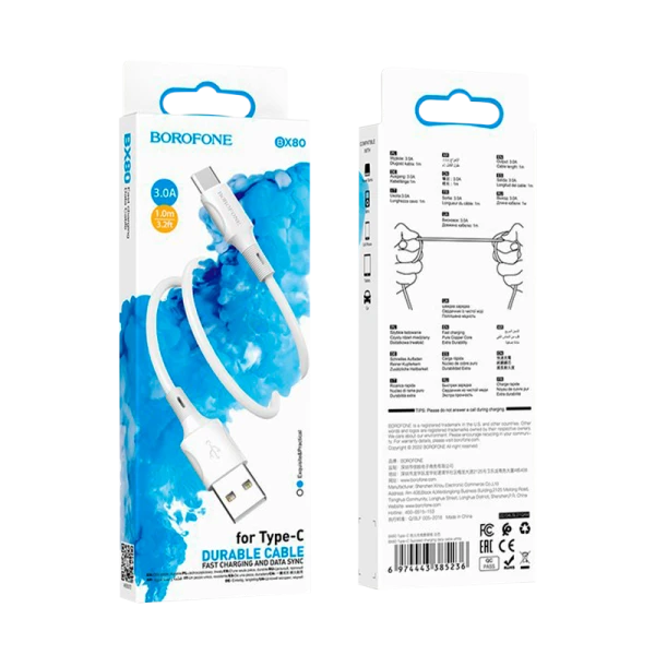 Кабель Borofone BX80 USB (m)-Type-C (m) 1м 3.0A силикон белый (1/360)