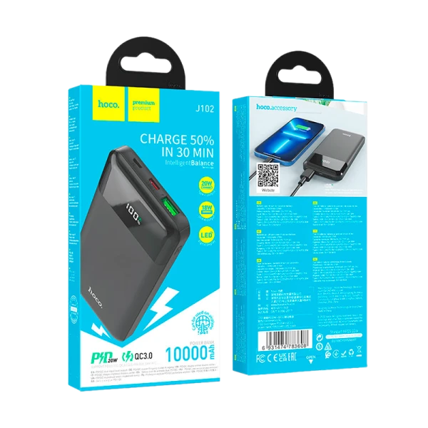 Внешний аккумулятор HOCO J102 10000mAh 3.0A 20W 1USB QC3.0 черный (1/66)