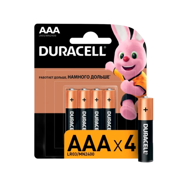 Батарейка Duracell Plus LR03 AAA BL4 Alkaline 1.5V;