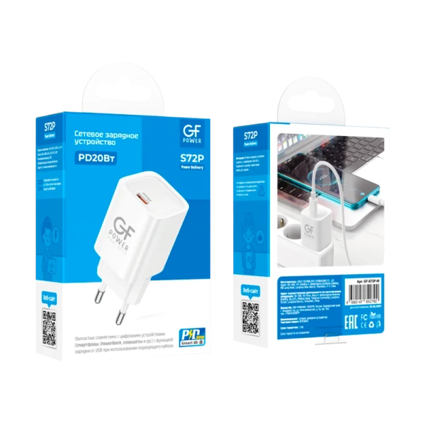 Сетевое З/У GFPower S72P Type-C 20W QC3.0 белый;
