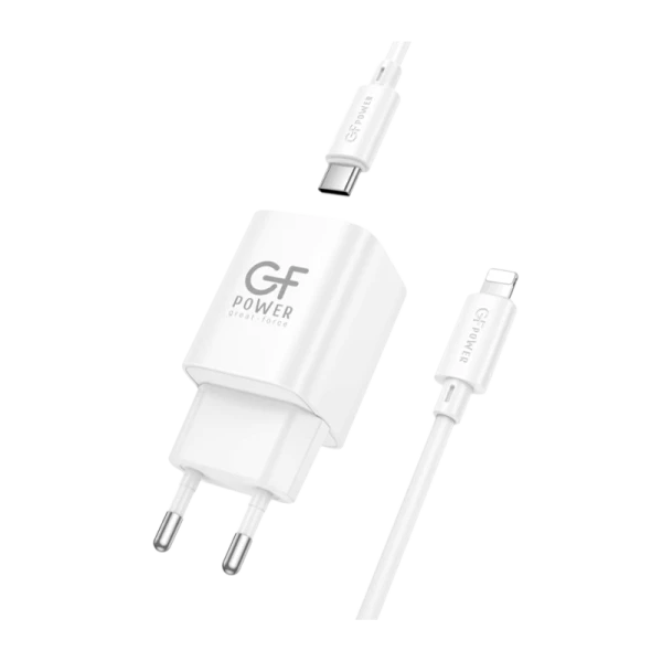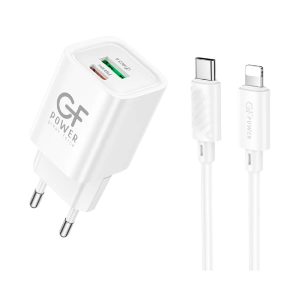 Сетевое З/У GFPower S75PQ-TL 1USB+1Type-C 30W QC3.0 с кабелем Type-C-Lightning белый (1/30/180)