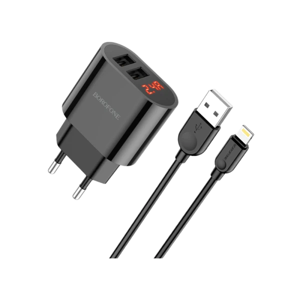 Сетевое З/У Borofone BA63A 2USB 2.4A дисплей с кабелем Lightning черный
