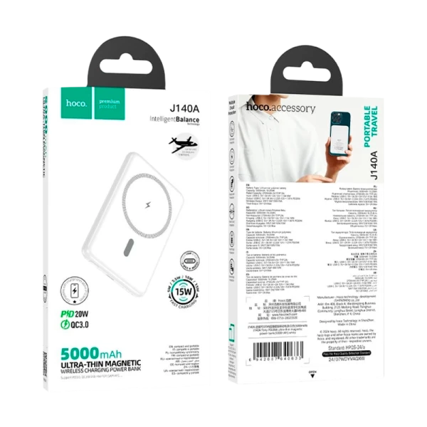 Внешний аккумулятор HOCO J140A 5000mAh 2.0A 20W Type-C PD,QC белый