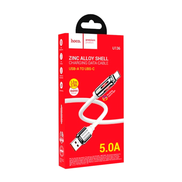 Кабель HOCO U136 USB (m)-Type-C (m) 1.2м 5.0A TPE белый