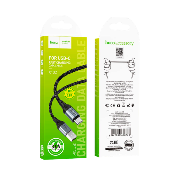 Кабель HOCO X102 USB (m)-Type-C (m) 1м 3.0A ткань+сталь черный (1/31/310)