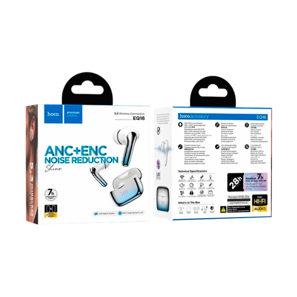 EQ16 Shine, беспроводная гарнитура TWS, BT v5.3, ANC и ENC шумоподавление, батарея зарядного чехла 320mAh, батарея гарнитуры 40mAh, 7 часов работы и 160 часов в режиме ожидания, поддержка подключения к 2 телефонам;