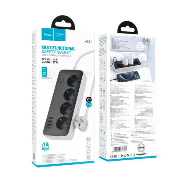 Сетевой фильтр HOCO AC21 - это устройство, которое обеспечивает надежную защиту вашей техники от скачков напряжения и коротких замыканий. Он оснащен 4 розетками, что позволяет одновременно подключать несколько устройств, таких как компьютеры, телевизоры, игровые приставки и другие. Одной из особенностей HOCO AC21 является наличие 3 портов USB-A и 1 порта USB-C. Это позволяет заряжать ваши устройства без необходимости использования дополнительных адаптеров. Таким образом, вы экономите место на рабочем столе и всегда имеете под рукой источник питания для ваших гаджетов. Сетевой фильтр HOCO AC21 имеет длину 1.5 метра, что обеспечивает удобство использования и позволяет разместить его в любом удобном месте. Белый цвет корпуса делает его незаметным на фоне интерьера, что также добавляет эстетики. HOCO AC21 - это надежный и функциональный сетевой фильтр, который обеспечит безопасность вашей техники и удобство использования.