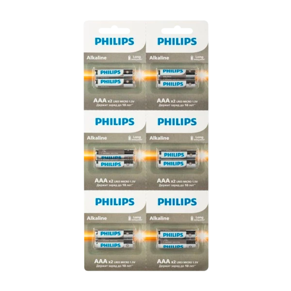 Батарейка Philips Entry LR03 AAA BL12 (2*6) Alkaline 1.5V отрывные; Щелочная технология для устройств с высоким энергопотреблением. Долговечные и надежные элементы питания для повседневных устройств, таких как часы и радиоприемники. Обеспечивают максимальное качество для стандартных задач.