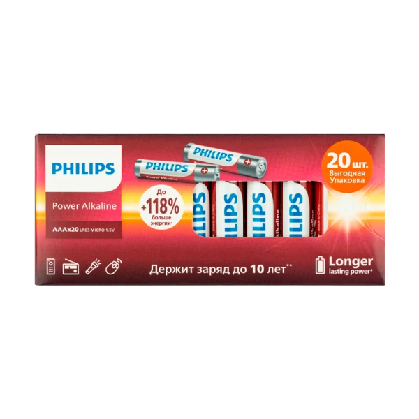 Батарейка Philips Power LR03 AAA BOX20 Alkaline 1.5V (20/400/43200)