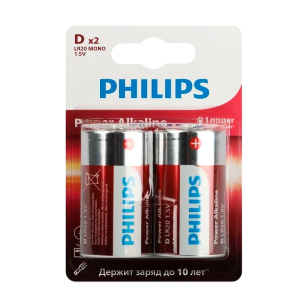 Батарейки Philips LR20P2B/51 типа D являются надежным источником питания для различных устройств с высоким энергопотреблением.