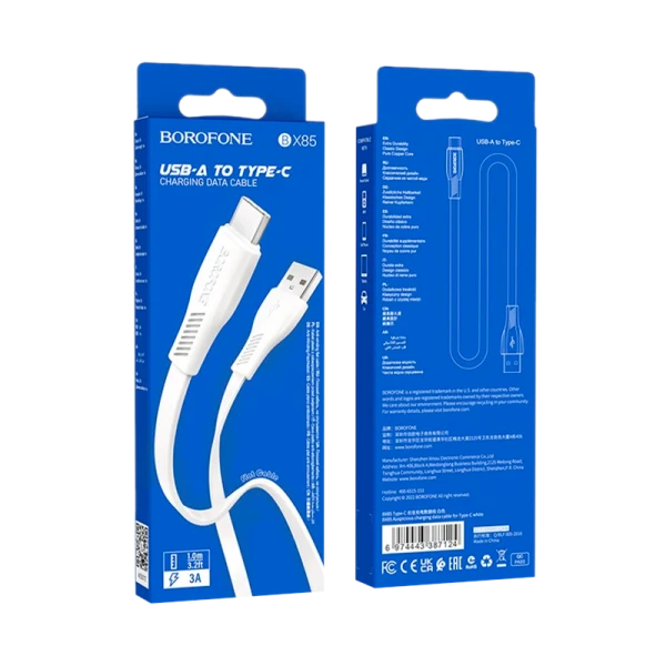 Кабель Borofone BX85 USB (m)-Type-C (m) 1м 3.0A ПВХ белый (1/360)