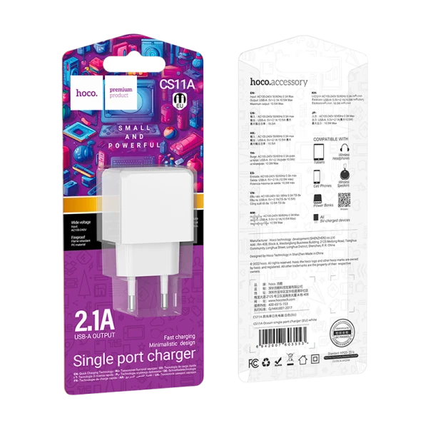Сетевое З/У HOCO CS11A 1USB 2.1A белый (1/28/168)